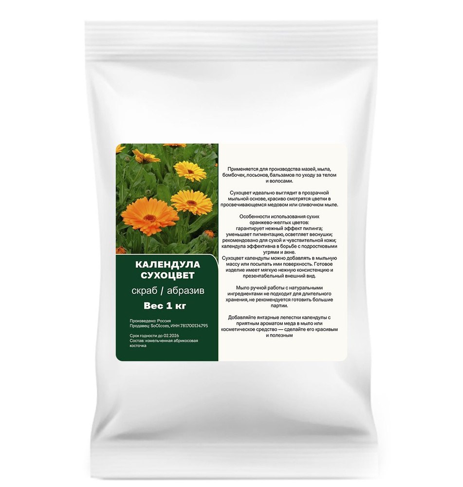 Косметологическое применение:Экстракт календулы часто добавляют в косметику для увлажнения, повышения упругости кожи и борьбы с высыпаниями.