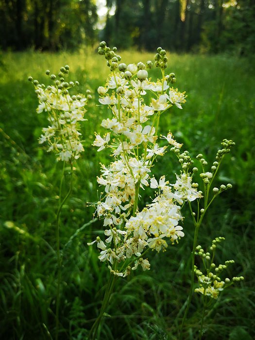 - Ингредиенты: 1-2 чайные ложки сухих цветков лабазника и 200 мл горячей воды.